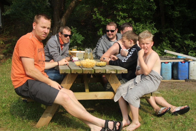 Til gengæld gik det lystigt for sig ved grillerne, og dagen endte på bedste vis med fællesmiddag, først ude i læ bag klubhuset, siden inde.